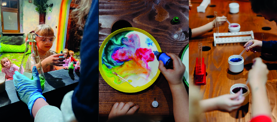 Uz interaktivne eksperimente otkrivamo misterije fizike, kemije i biologije uz zabavne šarene pokuse.